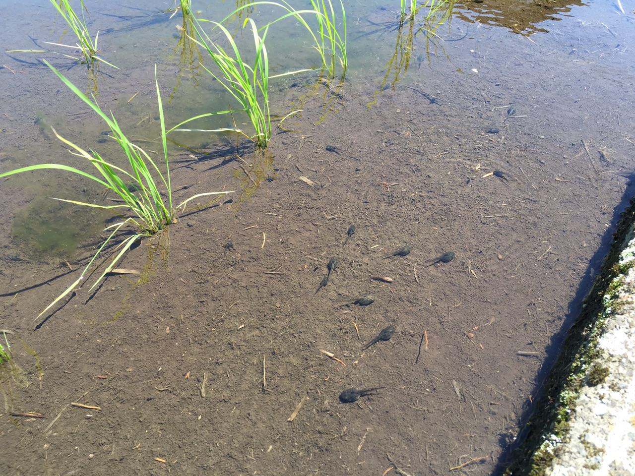 路边有条小水田里养着一群鸭子