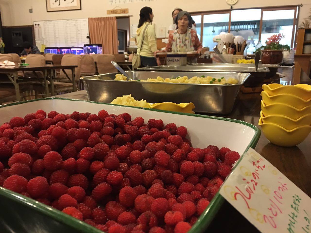 在木的花,吃饭是自助餐的形式。做饭担当们会把吃法做出一个模板告诉大家怎么吃。