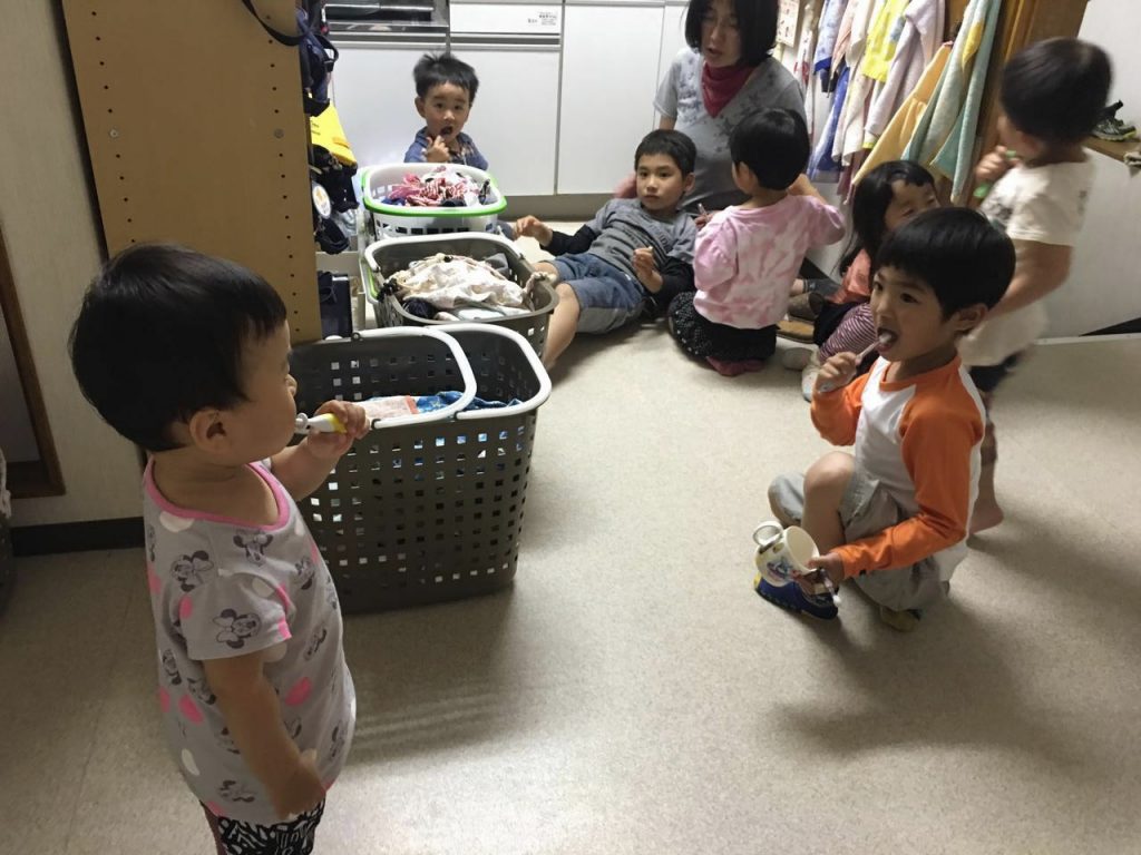 晚上吃完晚饭,上二楼小朋友们一起刷牙,溪刷刷溪刷刷~