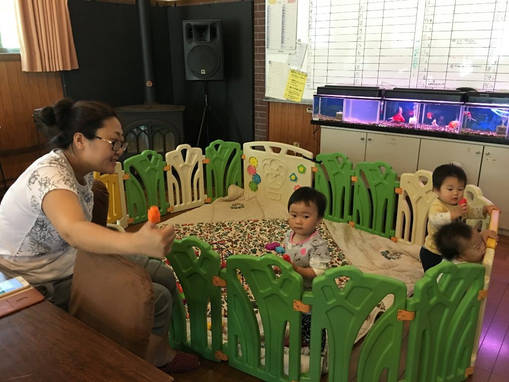 这时候,溪姐则被放在二楼的婴幼儿室跟小伙伴们玩。
