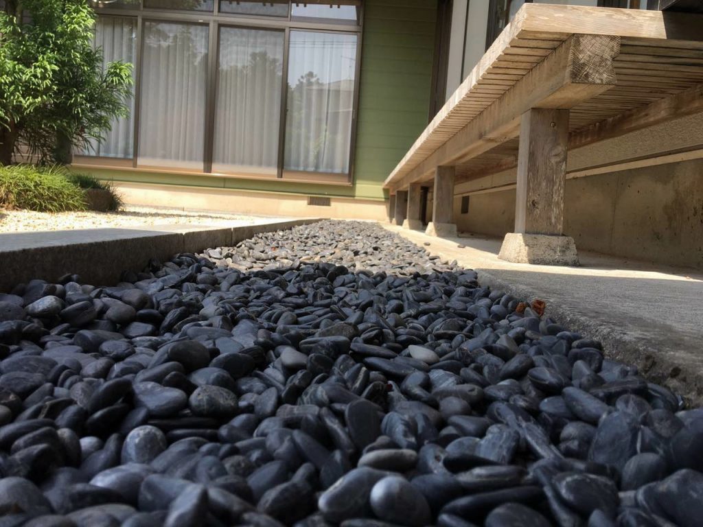 庭院里洒满了小石子,还有一些园艺植物。